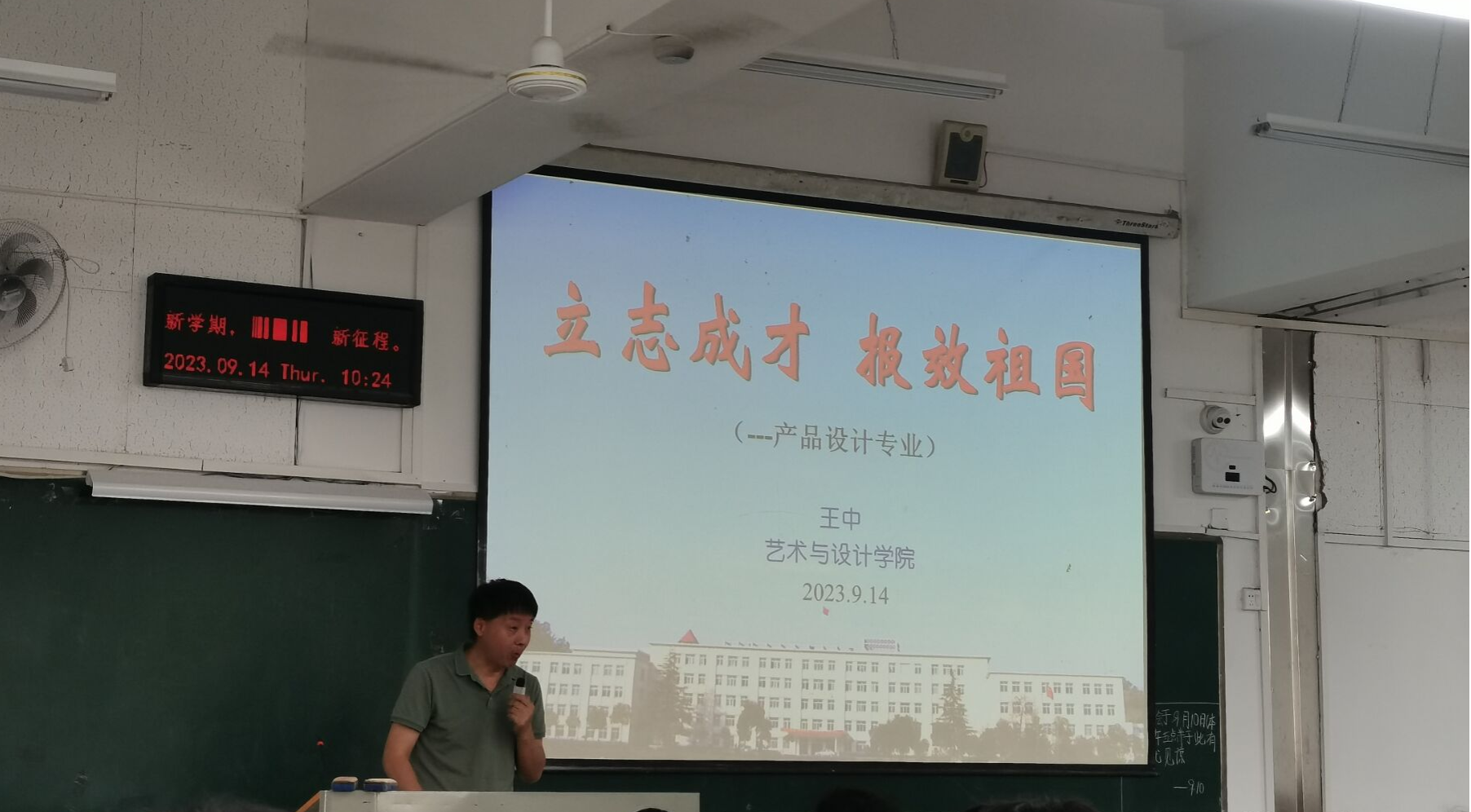 朱炜老师基于新征程、新工科、新文科、新设计主题为2023级工业设计专业新生展开了一场别开生面的介绍会。主要围绕着工业设计的“四个面向、两个特征、三种趋势、三大方向”进行介绍。他强调工业设计未来要坚持面向世界科技前沿、面向经济主战场、面向国家重大需求、面向人民生命健康,不断向高质量发展的广度和深度进军。同时针对于我院工业设计的创办与发展、特色与定位、培养模式与培养理念、后期专业就业方向、途径以及升学等方面展开详细介绍。