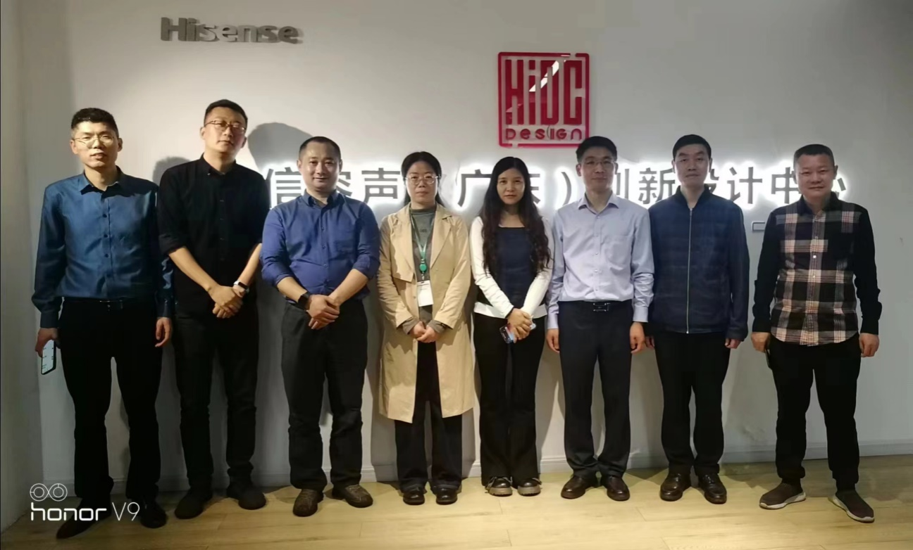 在海信容声(广东)创新设计中心,产品总监王刚、陈治兵、高级工程师闫娜娜等人带领黄进涛一行参观了公司的设计创新中心、产品展示中心、公司展厅,随后举行了座谈交流。座谈会上,黄进涛从“因车而建,因车而兴”“产教融合”“三步走”发展战略三个方面向企业介绍了有爱爱