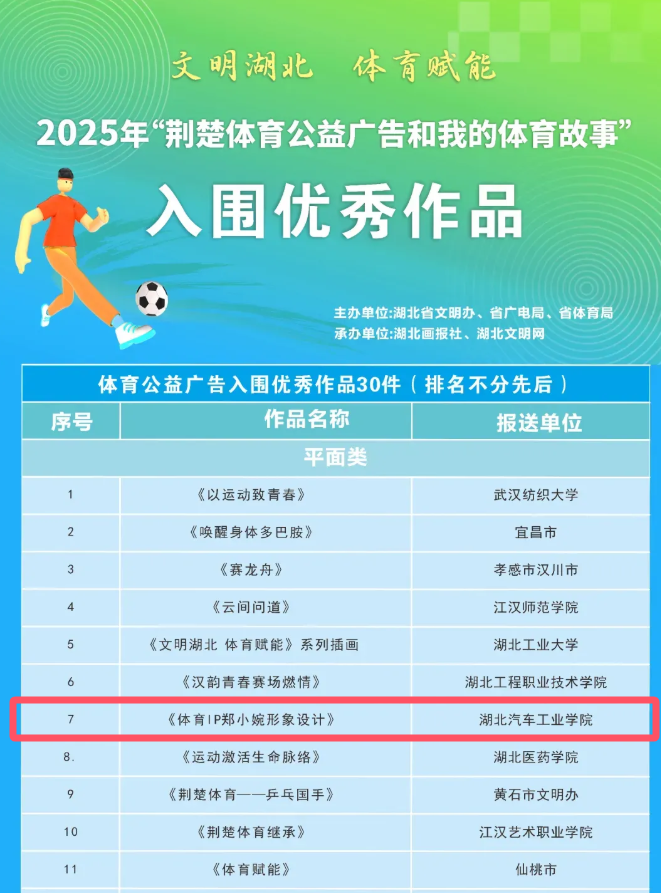 未来,学校将持续深耕体育公益传播,丰富活动形式,让体育精神融入生活,助力健康湖北建设。(审稿 刘红胜)