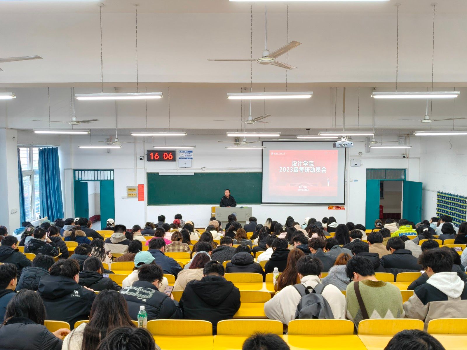 会上,王新首先作动员讲话,她结合当前就业形势与设计学科发展趋势,深入剖析了考研对于个人长远发展的重要性,并对2023级学生提出了三点希望:一是要认清形势,早定目标,结合自身专业兴趣和职业规划理性选择报考院校和专业;二是要夯实基础,久久为功,充分利用接下来的备考时间,特别是要重视英语和专业课基础的积累;三是要坚定信念,调整心态,要有面对困难的准备,更要有战胜困难的勇气。最后,她从院校选择策略、理论复习重点等方面进行了讲解,提醒同学们避免信息差,做到精准复习。