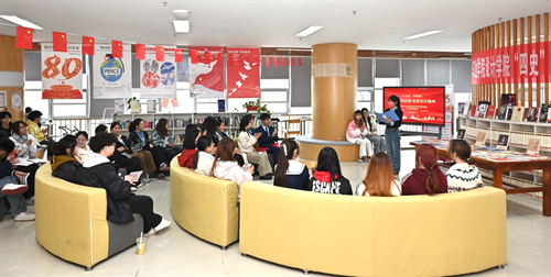 学生朗诵了《山河作答》《八十年的刻度》《以步丈量,山河璀璨》《烽火里的星辰》《时间的回信》等作品,深情演绎了红色家书、革命诗词等经典内容,轻柔的背景音乐搭配真挚的情感表达,让现场师生沉浸式感受红色文化的魅力与力量。诵读活动穿插“四史”知识小问答环节,题目围绕党史重要事件、英雄人物等,现场师生踊跃作答,在互动中巩固“四史”知识。