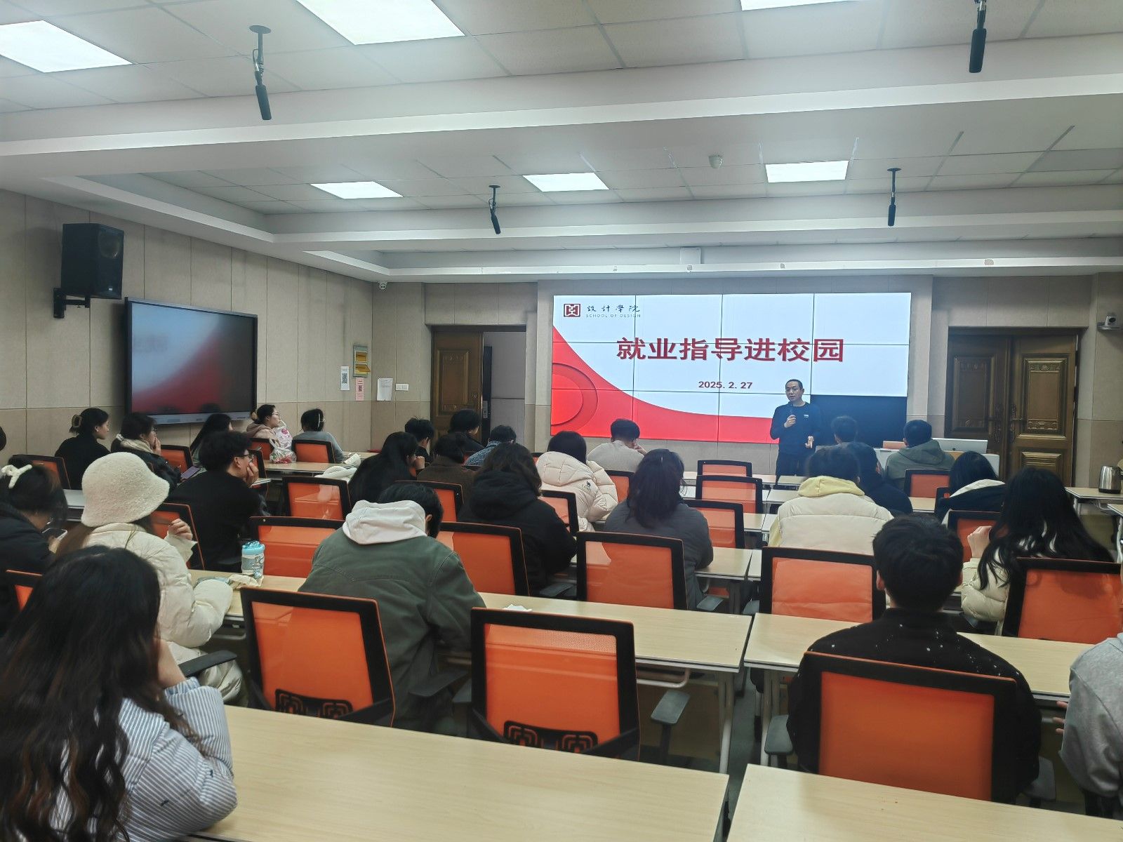 周元洪立足当下高校毕业生就业市场的变化,解读当前考研就业的新形势。通过一系列典型求职案例,生动展现了毕业生在求职路上的探索与成长,为在场学子提供了宝贵的实战经验。针对设计类专业的独特性,周老师细致入微地讲述了如何科学制定求职规划、全面做好就业准备等实践技巧,为同学们的职业生涯铺设了坚实的基石。