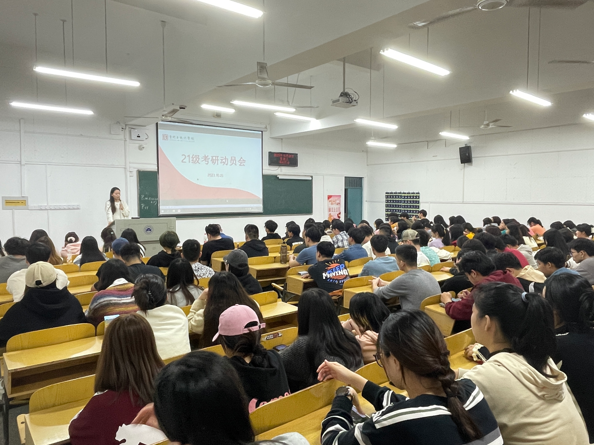 考研动员大会从考研的重要性、当前就业形势、考研院校及专业选择、备考方法和计划以及学校考研政策等几方面进行。会议中,董煌煌建议学生:一是要坚定信念、树立信心,在备考后期阶段极易自我怀疑,在放弃和坚持中徘徊,需要做到的就是相信自己,坚持到底;二是要制定科学合理的计划,结合复习时间制定短期和长期计划,把知识点串联起来形成自己的知识体系;三是要持之以恒、合理安排时间,充分平衡把握学习和休息,注重劳逸结合;四是要克服困难、互帮互助,勤学好问,思维碰撞可能会有意料之外的收获。