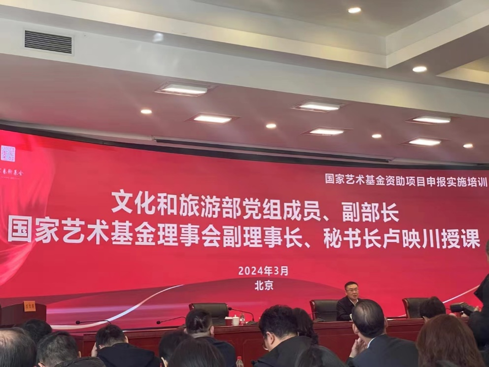 院长杨先艺带队参加国家艺术基金资助项目申报实施培训班,课程包括国家艺术基金申报指南、项目评审、实施监督、成果运用等方面的辅导培训。本次培训为有爱爱