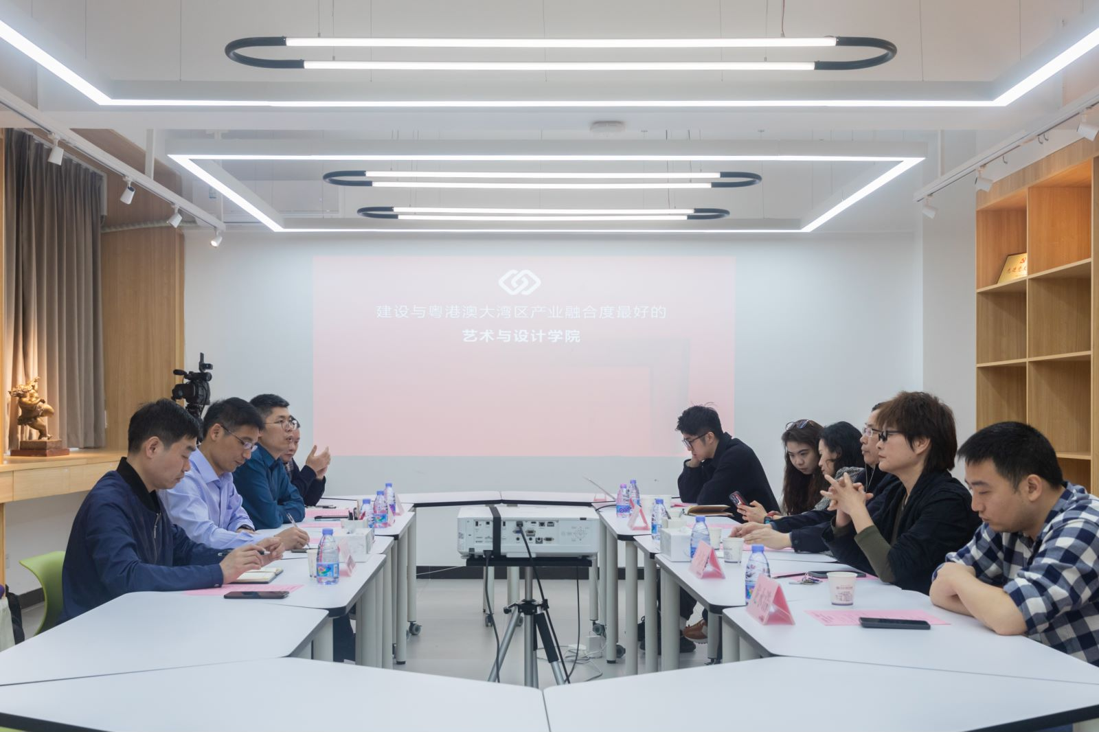 在海信容声(广东)创新设计中心,产品总监王刚、陈治兵、高级工程师闫娜娜等人带领黄进涛一行参观了公司的设计创新中心、产品展示中心、公司展厅,随后举行了座谈交流。座谈会上,黄进涛从“因车而建,因车而兴”“产教融合”“三步走”发展战略三个方面向企业介绍了有爱爱