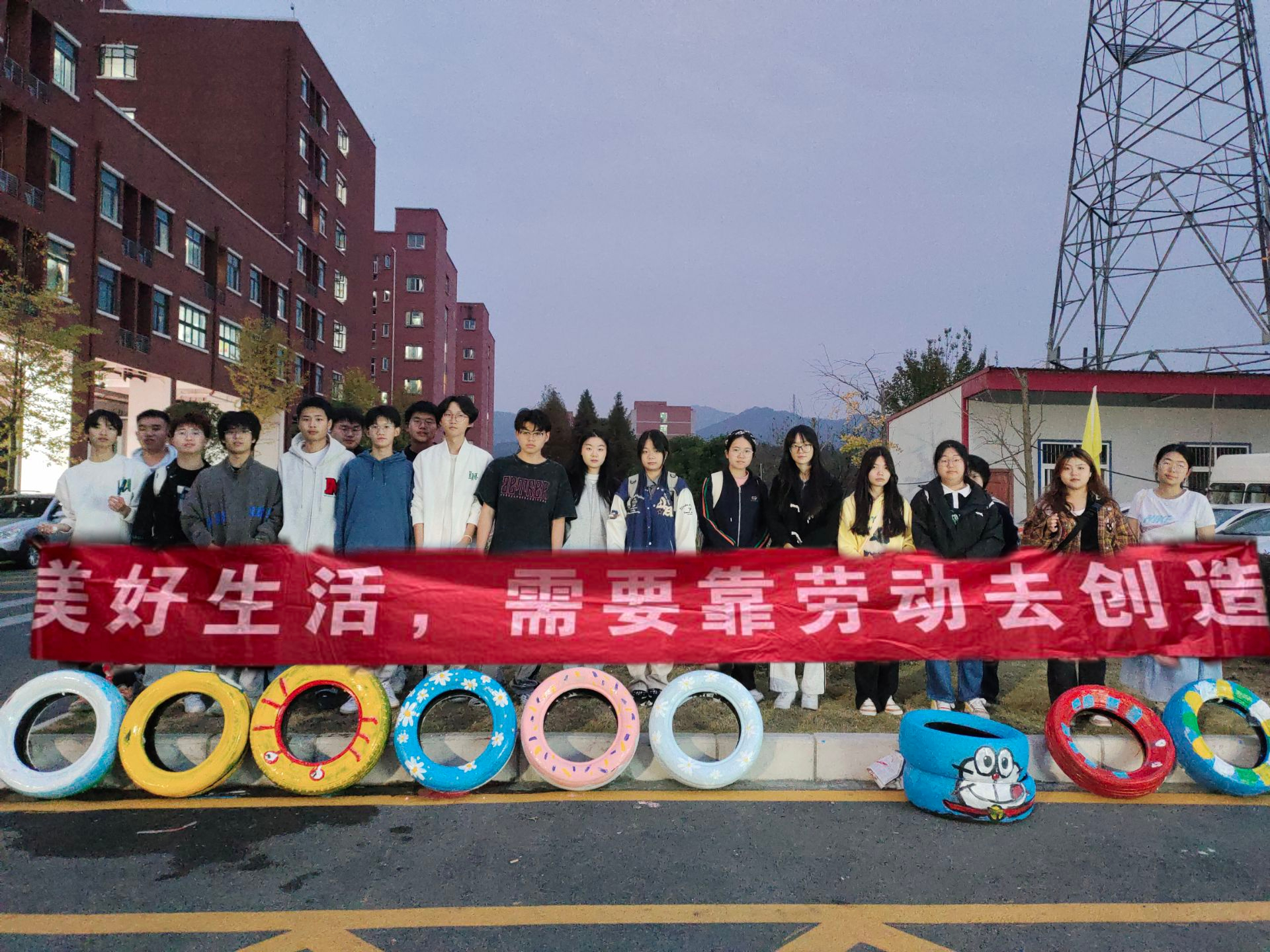 在老师的带领下,同学们热情投入,充分发挥了丰富的想象力和创造力,在旧轮胎上尽情描绘,给轮胎换上了“新装”。原本废弃的轮胎披上了色彩鲜明且和谐的图案,宛如完成了一场华丽的变身,实现了从废旧物品到艺术品的完美逆袭。