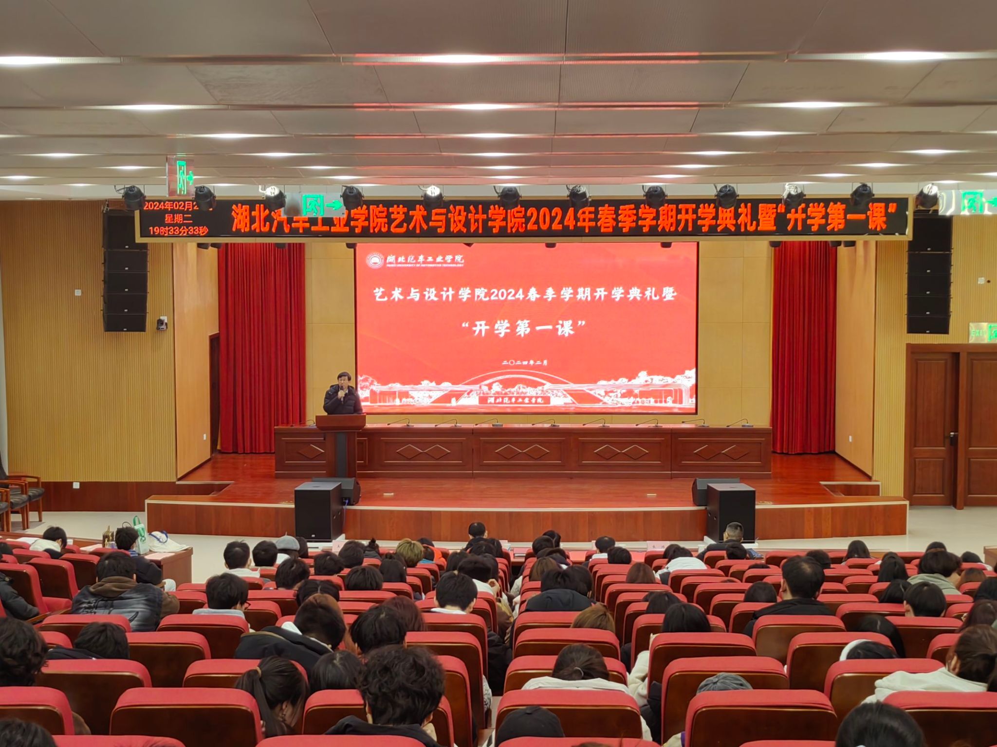 2024春季学期开学典礼暨“开学第一课”,学院分党委书记黄进涛、学院院长杨先艺、副院长朱炜、龚青山,全体班主任及辅导员和全体学生参加本次活动。分党委副书记王新主持大会。