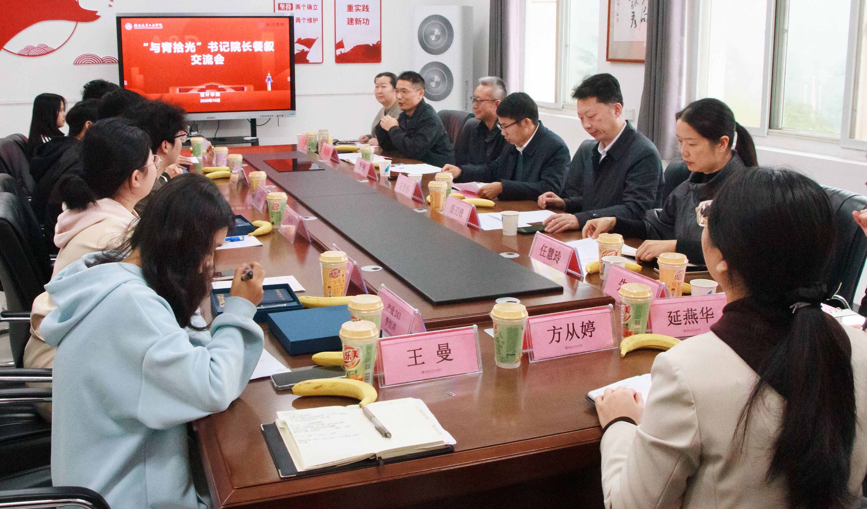 党委书记黄进涛、副院长朱炜、副书记王新、学工办全体辅导员共同参与,与学生代表共话成长。