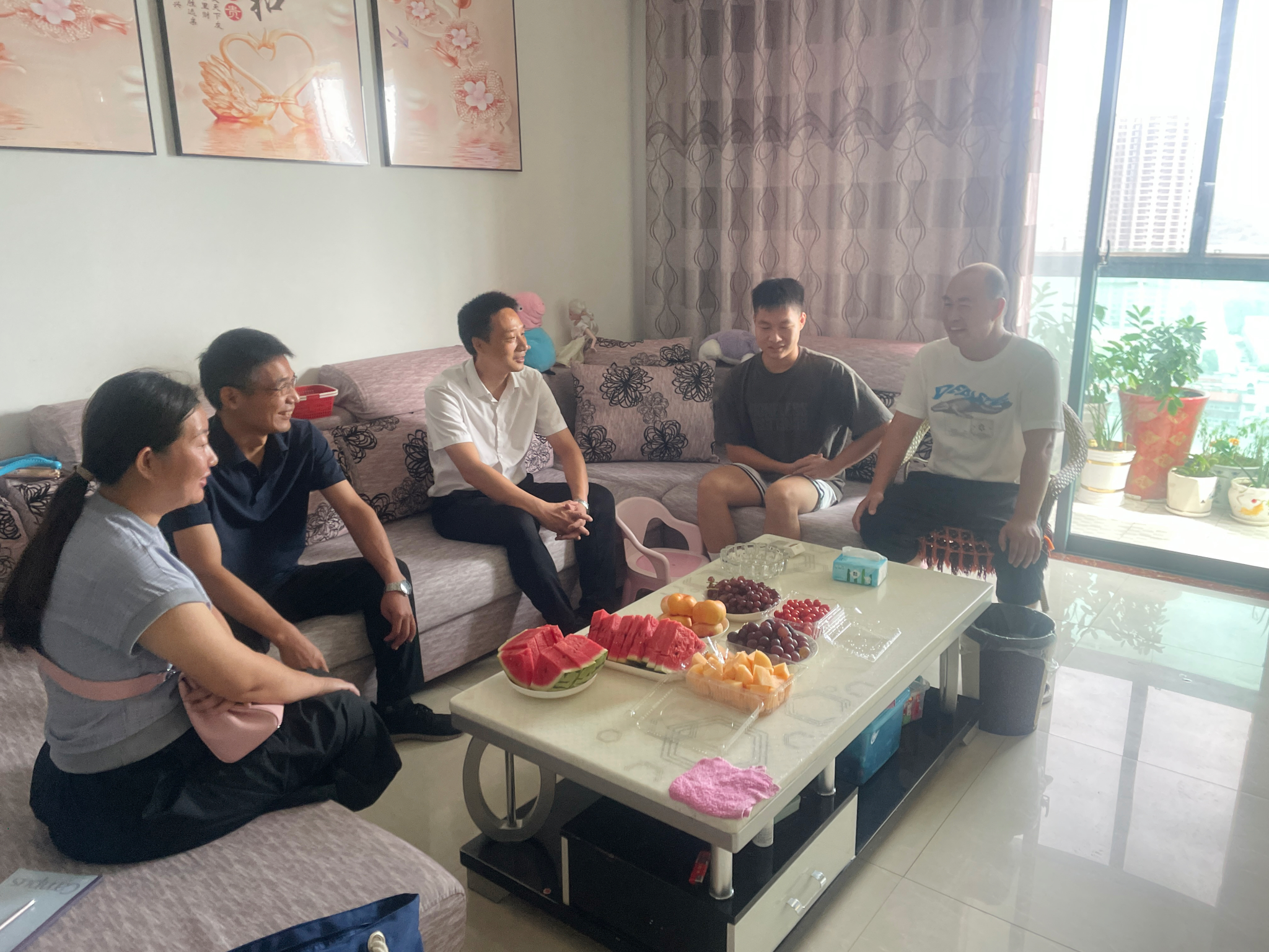 分党委书记黄进涛、副书记王新及辅导员郭慧一行前往白浪经济开发区开展暑期家访慰问活动,搭建起家校沟通的桥梁。