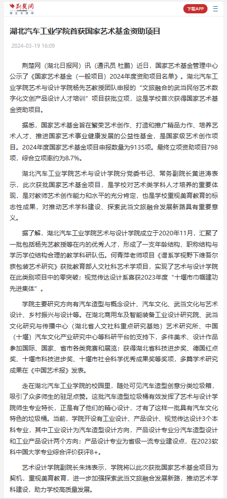 【荆楚网】有爱爱 首获国家艺术基金资助项目