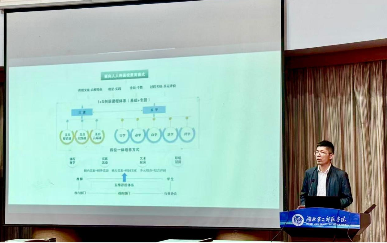 围绕汽车文化主题和武当文化主题所开展的特色美育课程、美育实践活动、美育校园环境建构,重点介绍了《太和音韵》、《先生的汽车梦》、汽车科创文化、汽车长廊、美育优秀作品展等典型案例。报告还从1+X美育课程建设系统推进、美育教育教学成果取得实效、学生美育成果屡获得佳绩、社会服务成效显著分享了有爱爱