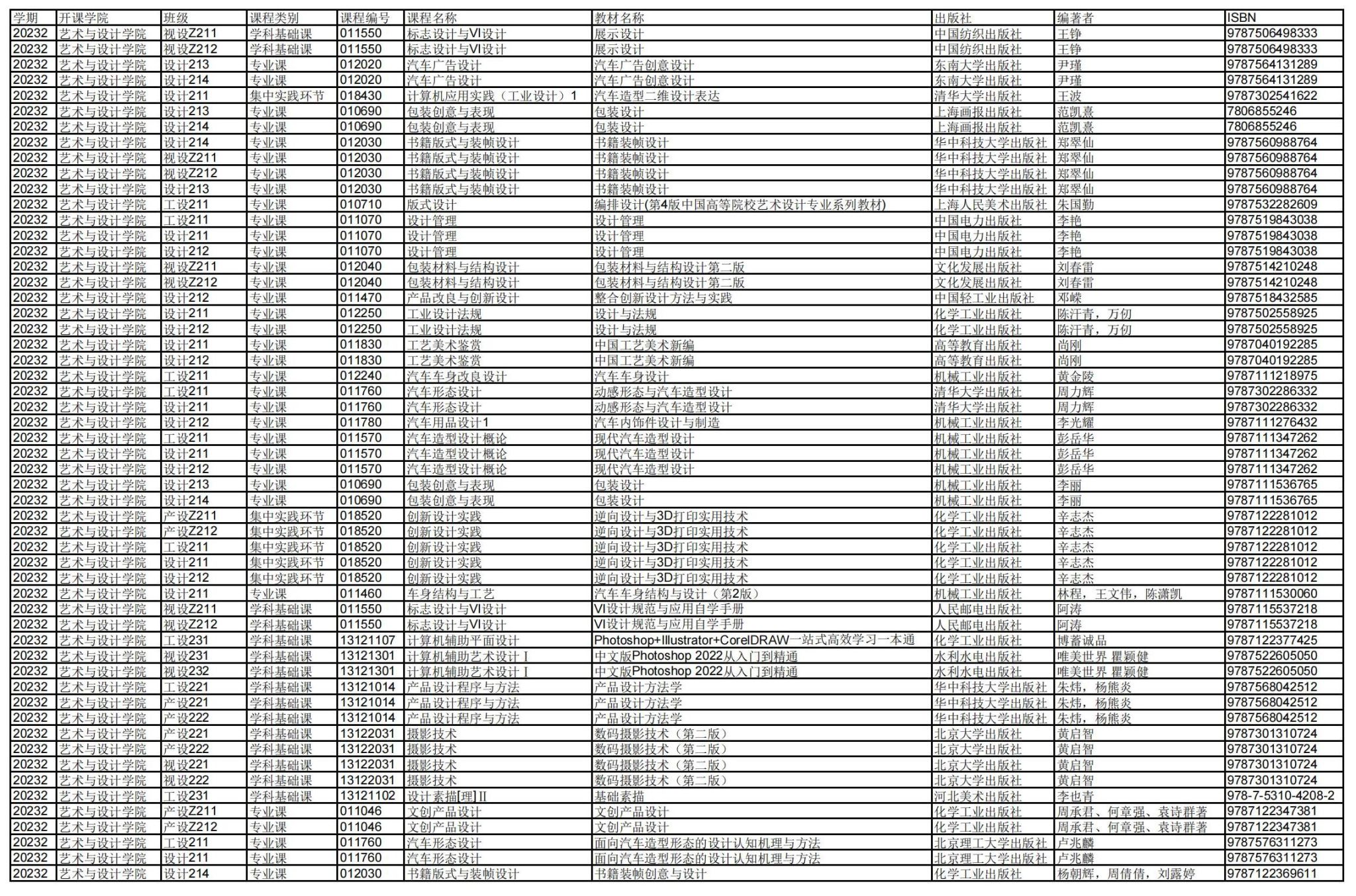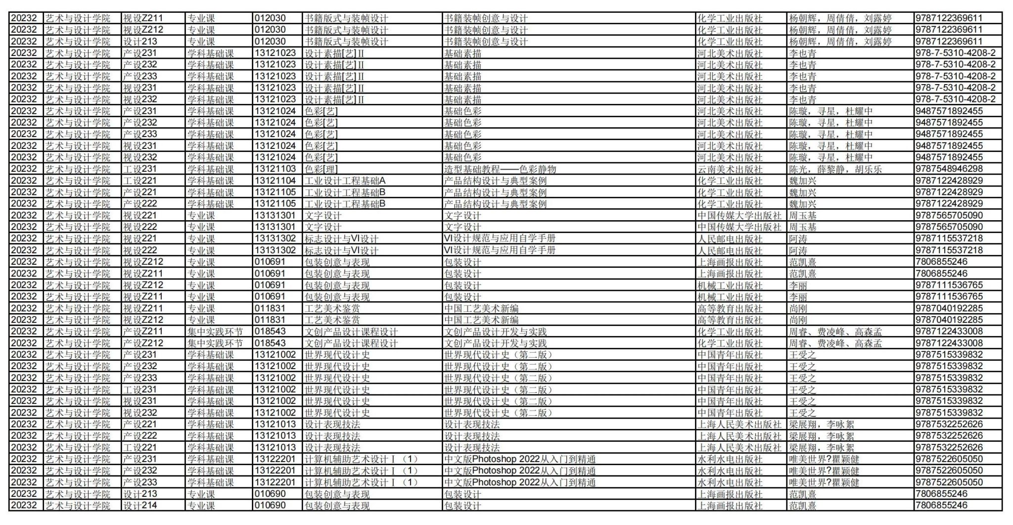 艺术与有爱爱 2023-2024学年第二学期学生教材选用公示