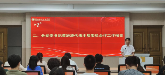 大会在雄壮的国歌声中拉开序幕。学院分党委书记黄进涛代表本届委员会作了工作报告,报告全面总结了本届委员会自成立后769天取得的成绩,以党建为引领,推动各项工作实现新突破,以发展为先导,教学科研成绩持续提升,以“三风”建设为抓手,学生工作取得实效;客观分析了存在的主要问题,明确提出了未来五年的主要目标和任务。