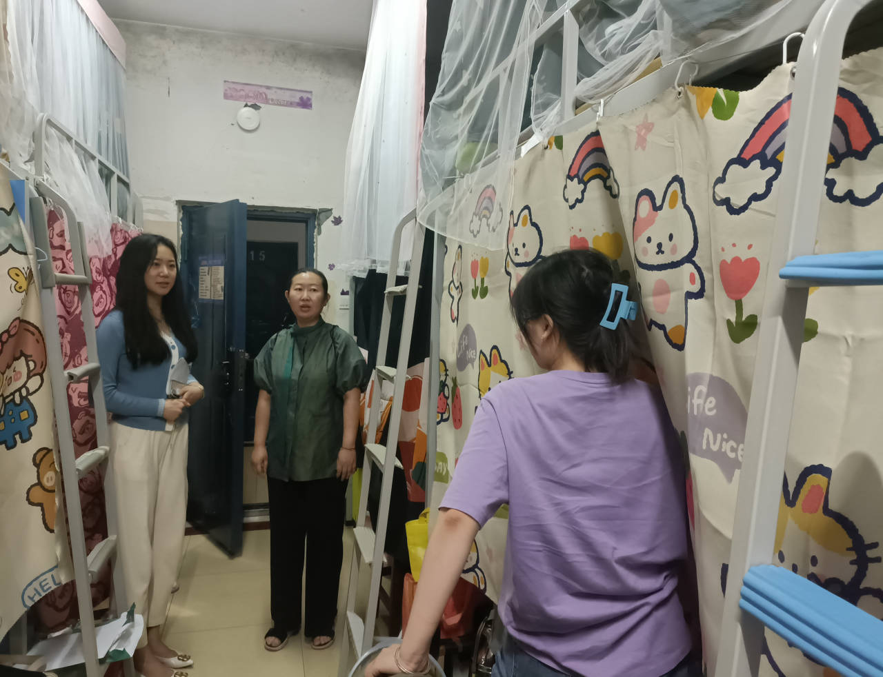 分党委副书记王新带领学工办全体教师于5月31日晚对艺术学院全体学生宿舍进行了实地走访,与同学们交心谈心,为同学们送去学院的关心和慰问。