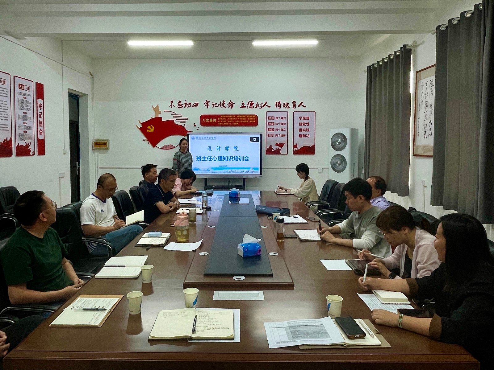 在1419会议室举行班主任心理健康工作培训会。学院党委书记黄进涛、副书记王新、团委书记董煌煌、全体班主任及辅导员参会。