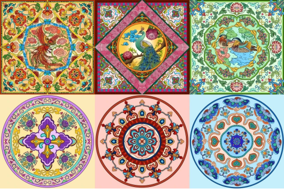 依据唐代历史文化、花鸟纹样的背景以及演变过程,将团窠纹、宝花纹、海兽葡萄纹等纹样与现代设计手法相结合,进行纹样“再”设计,让历史与现代碰撞出新的设计潮流。