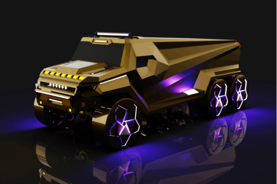 此设计是一款融合现代科技元素与未来感的观光车。车辆不仅具备强大的安全防护能力和车辆稳定状态。观光车还配备了蓝色和紫色的灯光效果,不仅增加了车辆的美观性,也使其在夜间或低光环境下更加醒目。这些灯光还具有警示作用,能够提醒乘客注意安全。流线型车身设计有助于减小风阻,提高观光车的行驶速度和稳定性。同时,这种设计也使得车辆外观更加现代和动感。