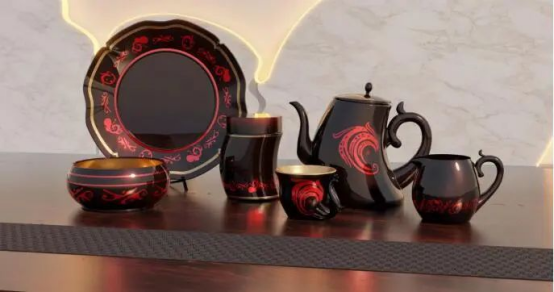 本方案参考在荆楚地域的漆器纹样特点,将漆器与日常生活茶具相融合,旨在拉近漆器和人们生活的距离。