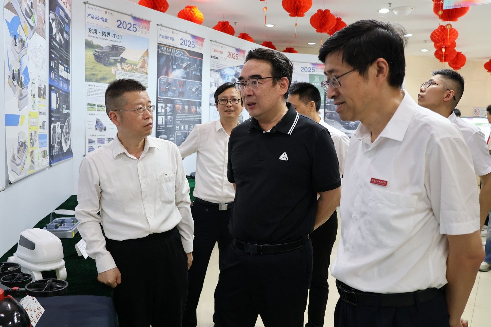 开幕式后,与会领导、嘉宾、师生共同步入展厅参观作品展。本次展览涵盖工业设计、产品设计、视觉传达设计三个专业,作品聚焦汽车特色,以服务地方经济建设为目标,紧跟新技术和新业态,深度展现了学子们的设计智慧和创新精神。毕业生们现场向观展嘉宾介绍自己的作品,分享设计灵感和创作过程。(审稿 黄进涛)
