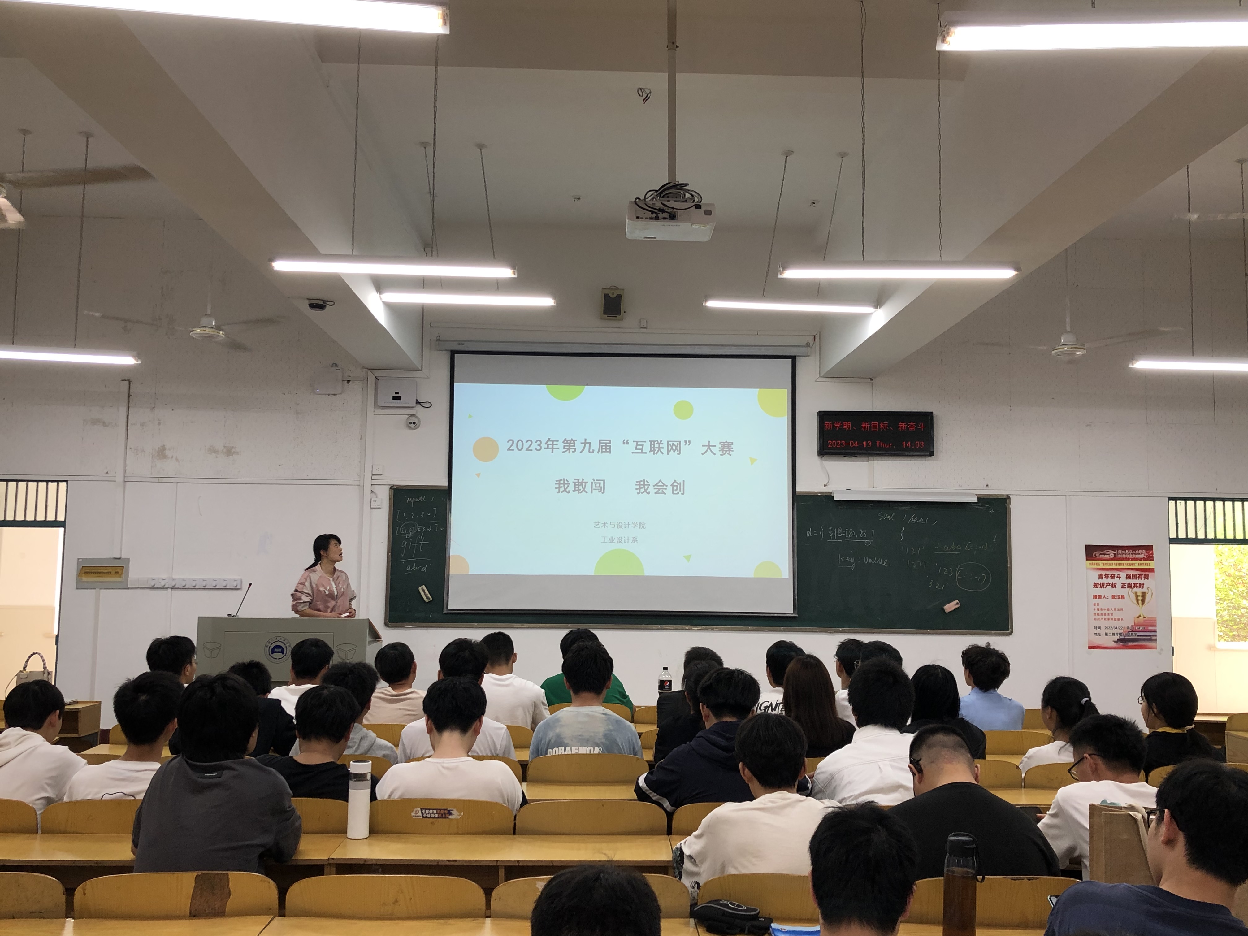 工业设计系在2104召开第九届“互联网+”大赛动员会,会议由院长助理刘敏主持,赵佳瑞、常欣欣等任课教师、20级、21级、22级工业设计专业学生参加此次动员会。