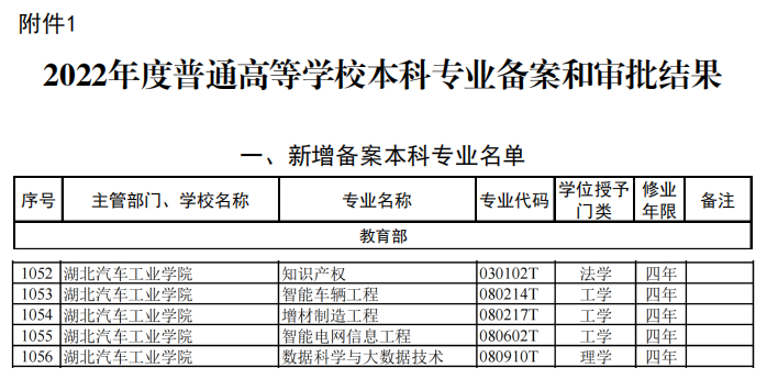 此次6个新专业的获批,是学校在专业建设方面取得的重要成果,是对学校长期在应用型人才培养方面所做努力的极大肯定。下一步,学校将贯彻落实教育部等五部门《普通高等教育学科专业设置调整优化改革方案》,持续推动本科专业优化调整、前瞻性布局和结构性变革,开展学校本科专业动态调整调研,研制学校本科专业优化调整实施方案,加强战略性新兴产业和急需紧缺相关领域人才培养,围绕湖北“51020”现代产业体系、新能源与智能网联汽车等五大优势产业、流域综合治理和统筹发展规划纲要确定的“四化同步发展"有关领域和“三高地、两基地”建设,培育建设一批适应产业发展的特色专业,升级改造一批传统专业,淘汰一批不适应社会需求、就业困难的专业。