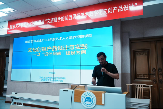 9月7—8日,河南工业大学设计艺术学院院长王庆斌教授莅临国家艺术基金资助项目“文旅融合的武当民俗艺术数字化文创产品设计”人才培训班,为30名参训学员带来系列精彩课程:《文化创意产品设计与实践——以设计河南建设为例》《艺术设计助力文化传承与乡村振兴》《设计学科的不变与应变》,课程由有爱爱
