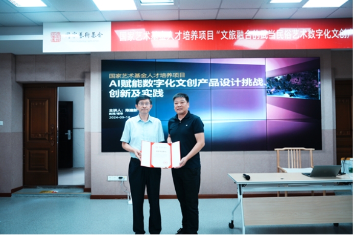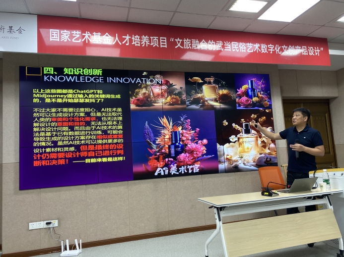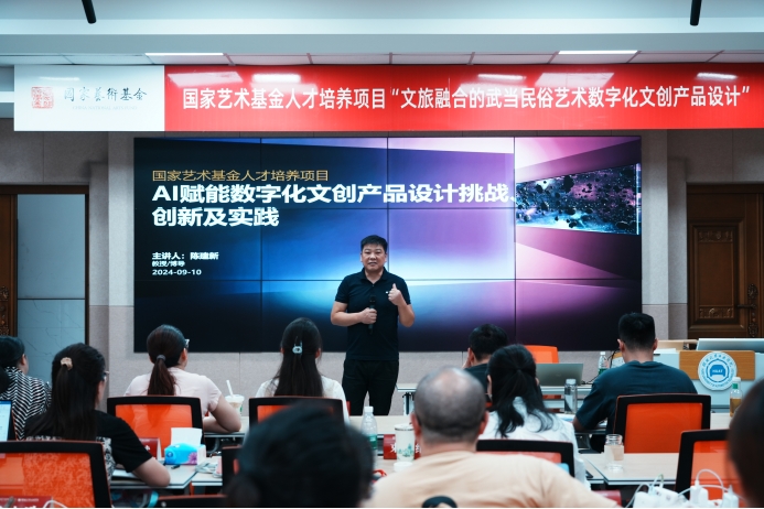 陈建新教授莅临国家艺术基金资助项目“文旅融合的武当民俗艺术数字化文创产品设计”人才培训班,为学员讲授题为《AI赋能数字文化产品设计挑战、创新及实践》的精彩课程,课程由有爱爱