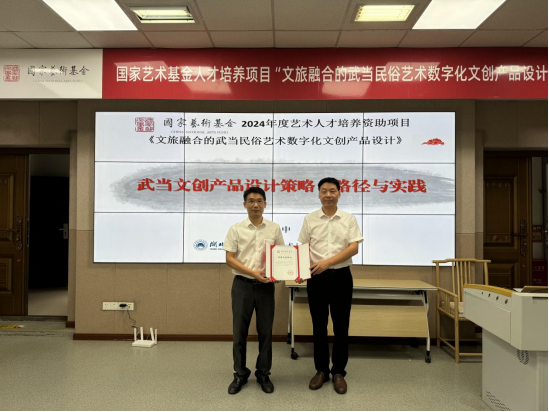 分党委书记兼常务副院长黄进涛为王中教授颁发国家艺术基金资助项目授课专家证书。